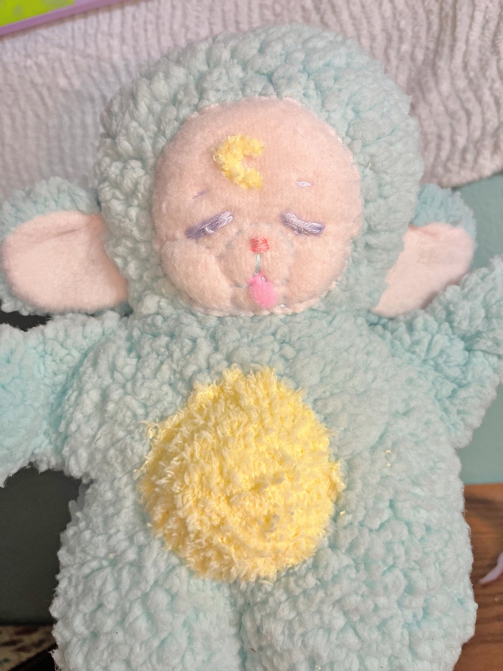 The hands and feet are filled with weighted beans! The tummy is ultra soft and the face is sewn fleece and felt!